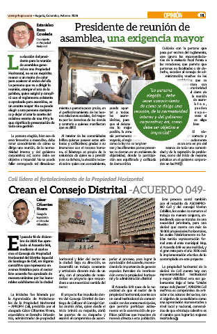 les de la Propiedad Horizontal tiago de Cali por el Concejal Car- cación con los entes municipales, una agremiación representativa a