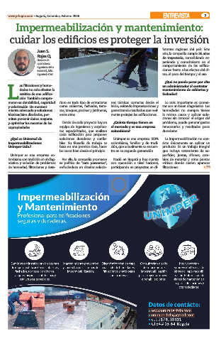 Impermeabilizaciones bles. Su filosofía de trabajo se colombiana, familiar y de tradi- siste únicamente en aplicar un